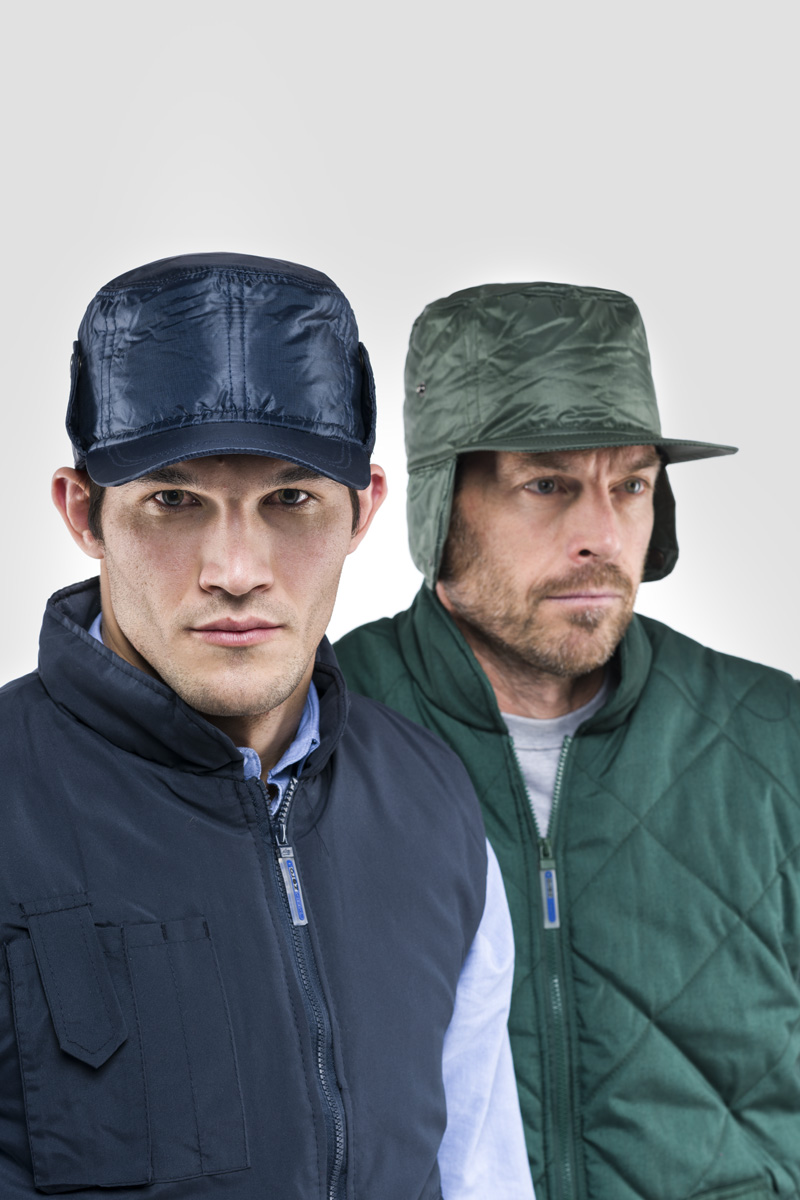 È possibile abbassare il lembo esterno del berretto (fissato con bottoni a pressione) per utilizzarlo come scalda orecchie