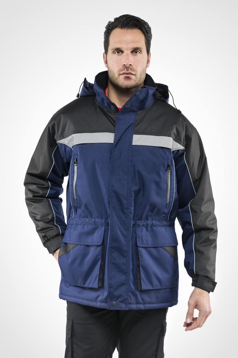 Cappuccio richiudibile nel collo, regolabile con coulisse e chiusura in velcro