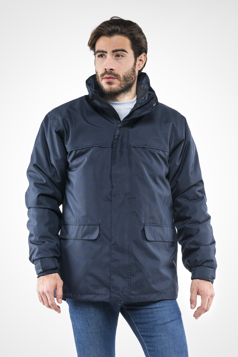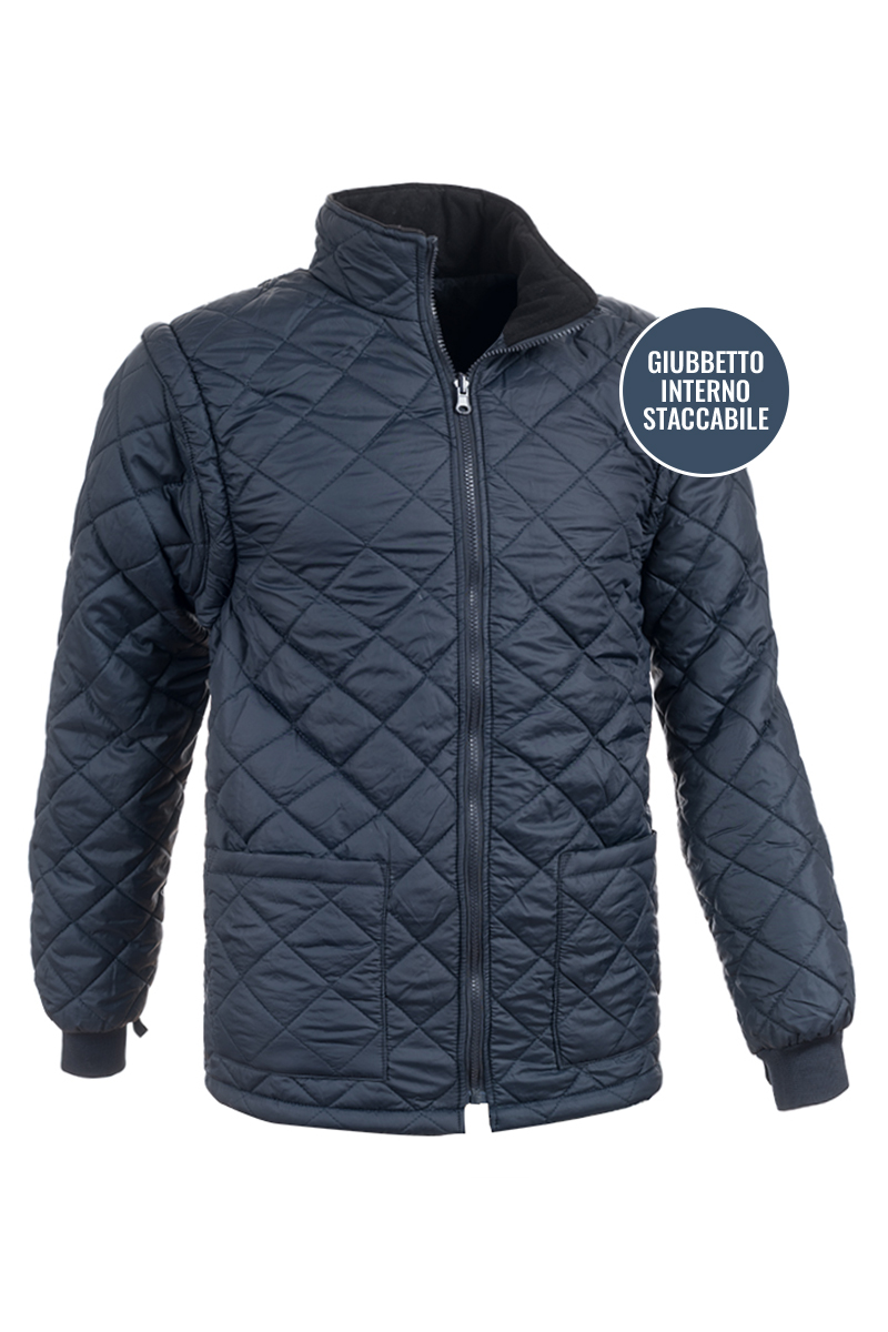 Chiusura centrale con cerniera ricoperta da pattina con bottoni