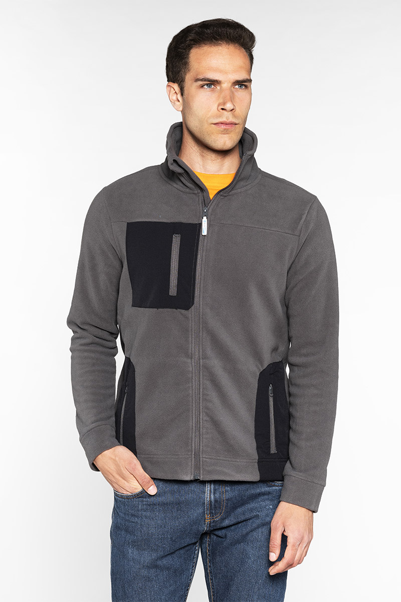Tasca sul petto lato destro in tessuto elasticizzato con cerniera ricoperta